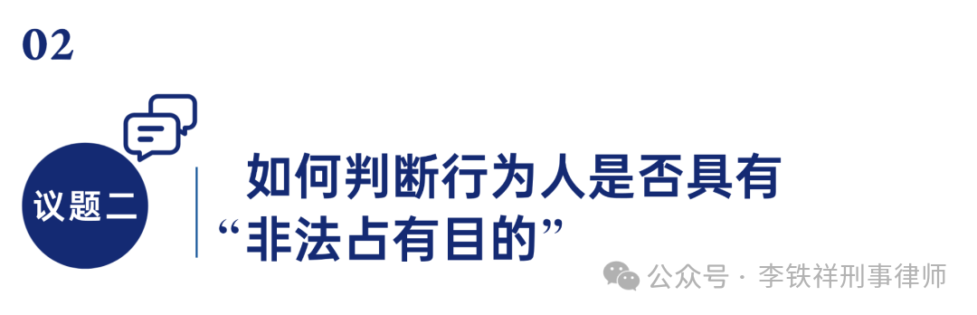 ➣ 二是要注意区分“占有意图”与“非法占有意图”。在认定非法占有目的时,需要重视行为背景与事后表现,谨慎推断行为人的主观意图。行为人事后实施的逃匿、挥霍、反复转移财产等行为,可用于判断行为人对取得的财物是否具有占有意图,但不能据此直接推定行为人占有意图的非法性。对行为人占有意图非法性的判断,需综合考察行为人是否具有民事权利基础,以及被害人是否负有相应的财产给付义务,若行为人所取得的财物在价值上并未超出其依法可以主张的合理范围,则难以认定其主观上具有非法占有意图。